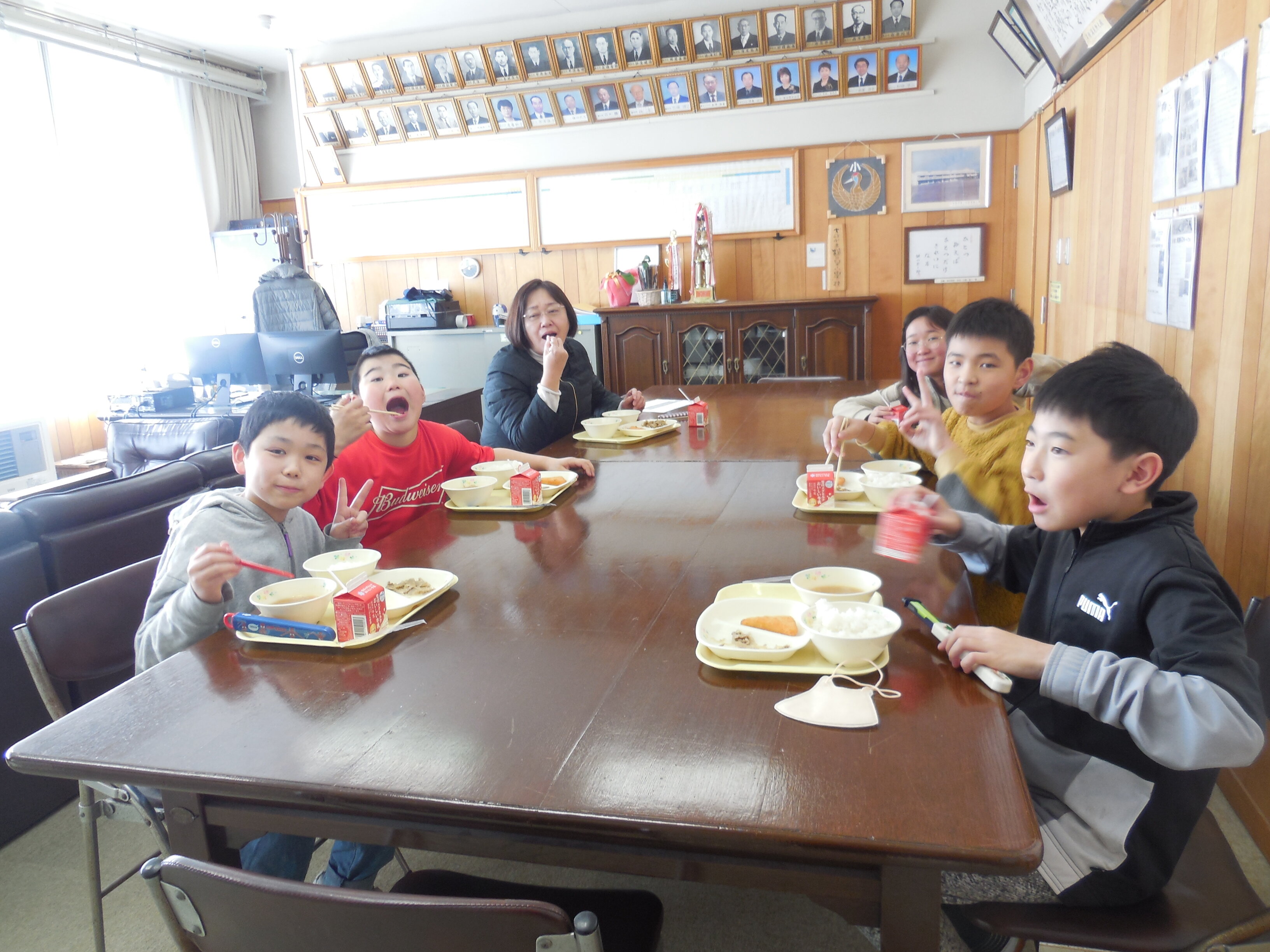 - 校長室で給食を食べたよ!