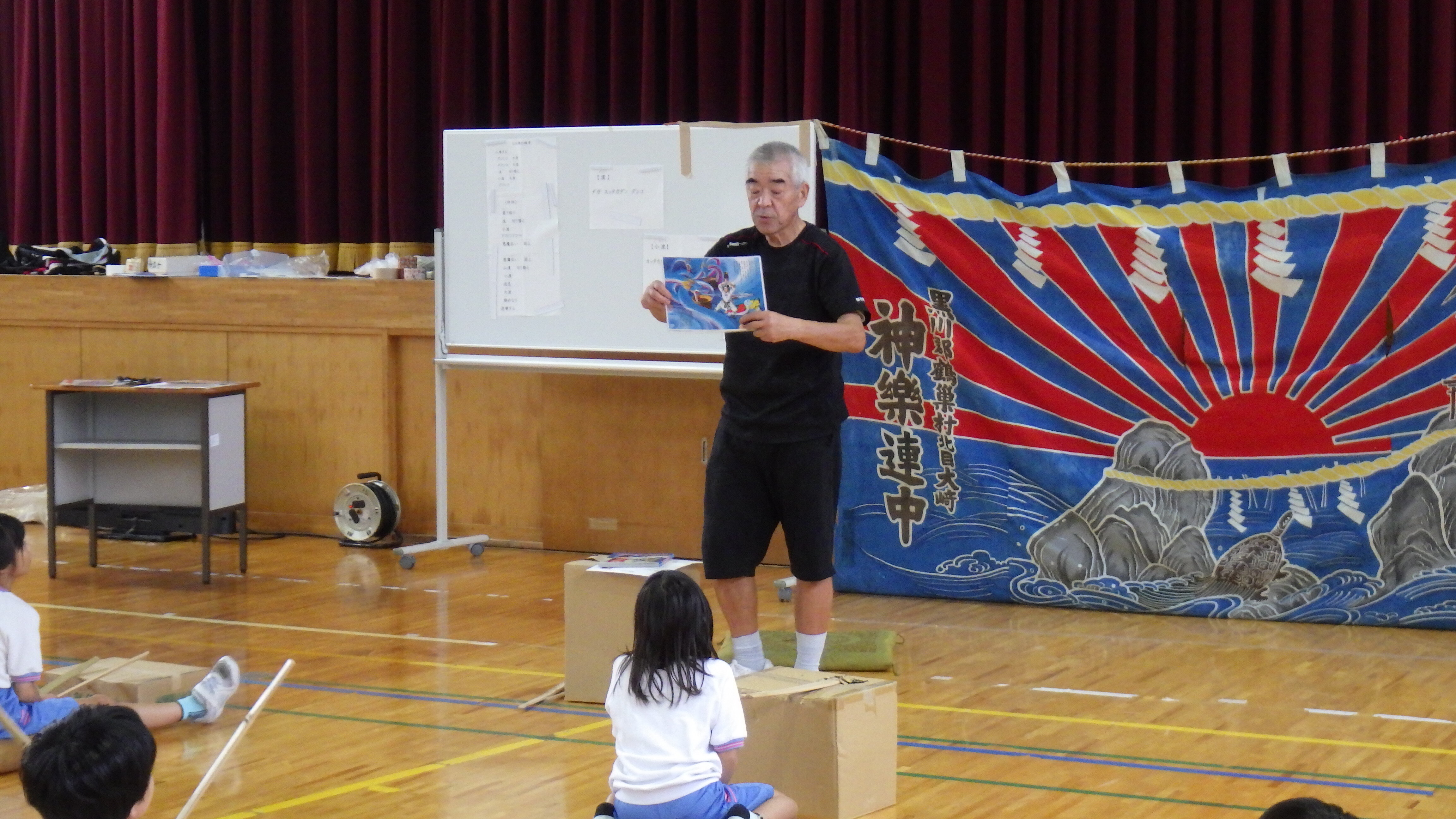 1回目の学習では、神楽の踊り方だけではなく、北目神楽の歴史等についてもお話していただきました。