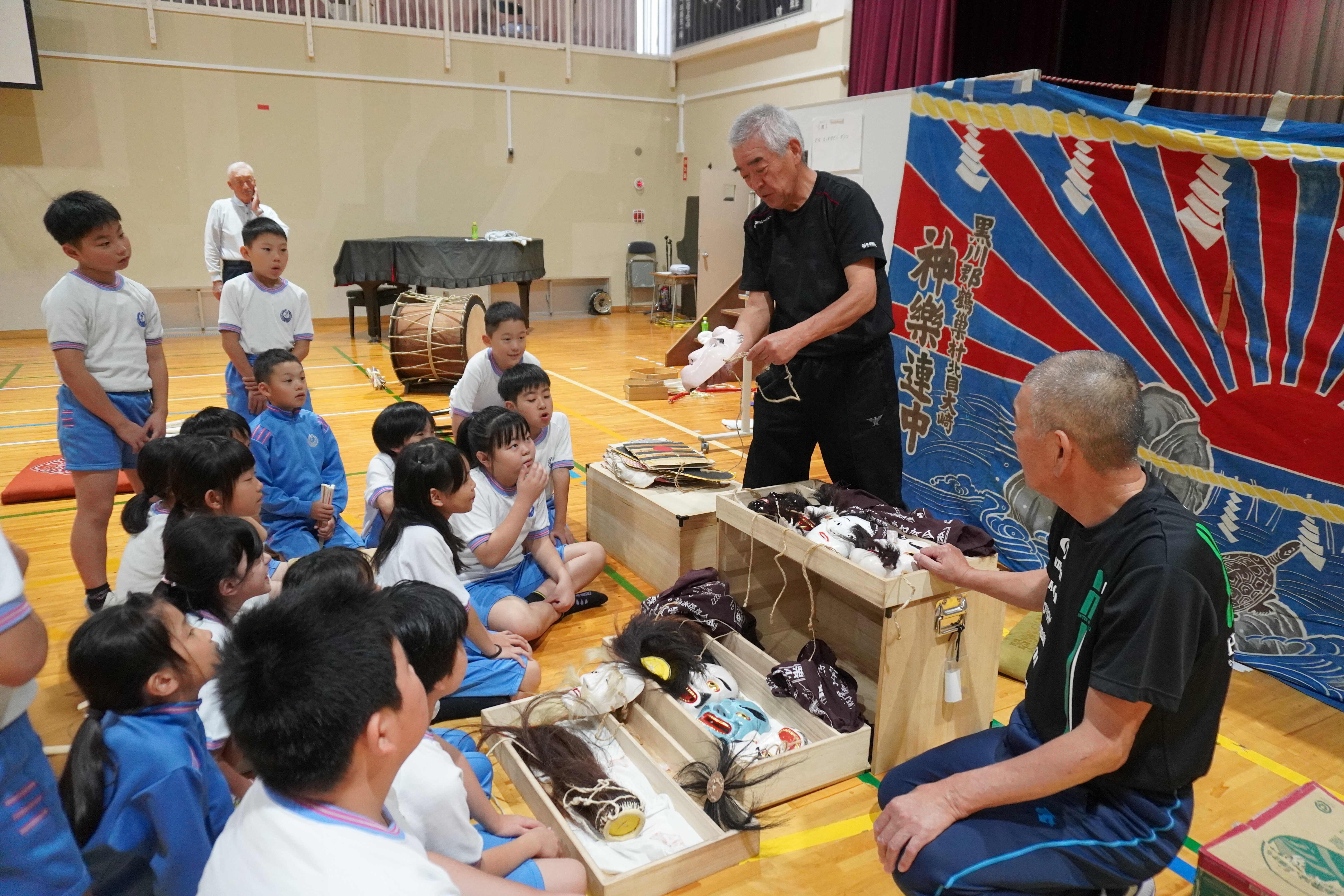 10月9日(木)に3・4年生が北目神楽の保存会の皆さんに神楽について教えていただきました。