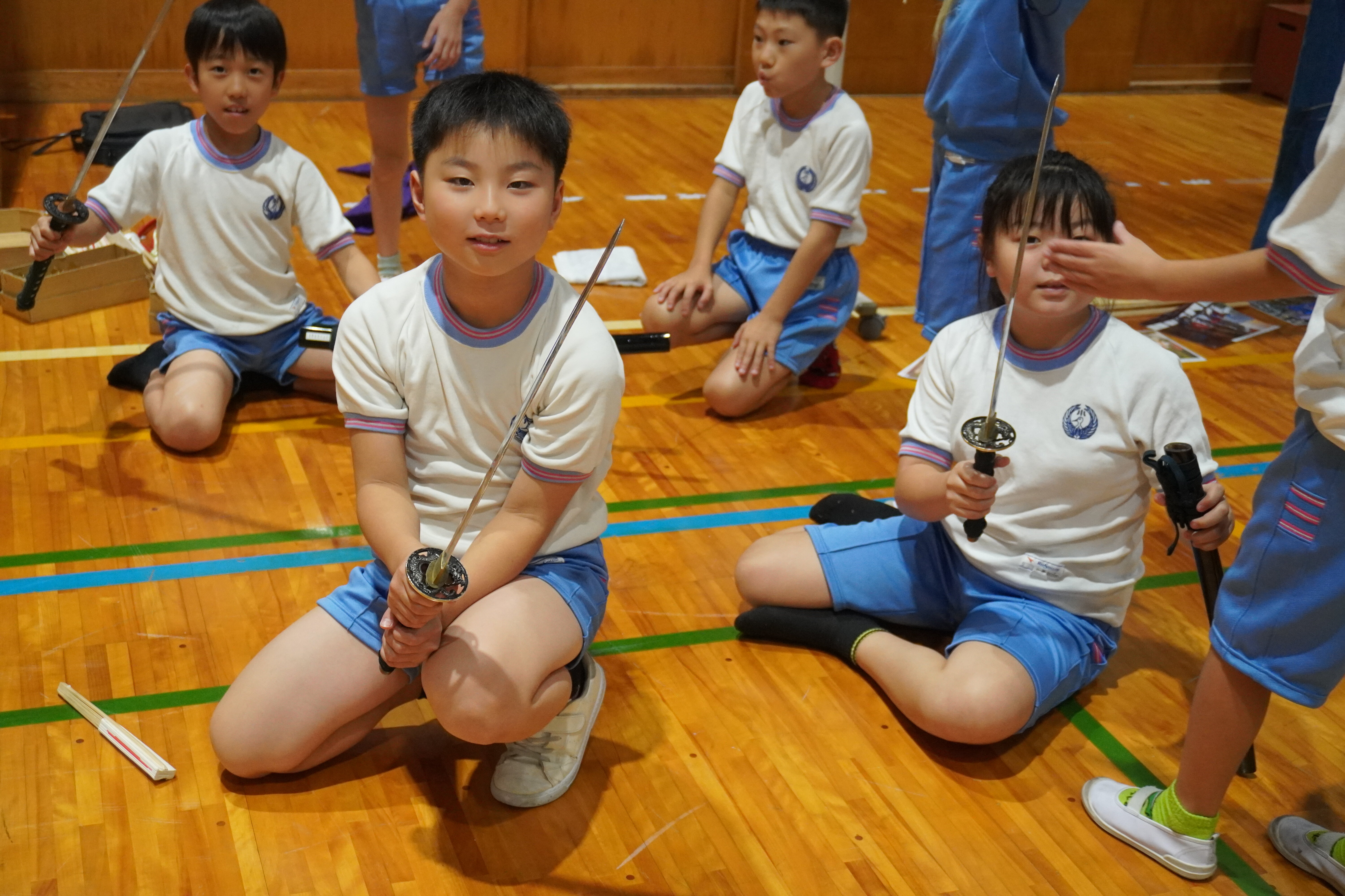 興味津々の表情で刀を手にしたり、お面を付けてみたりと神楽に親しむよい時間となりました。