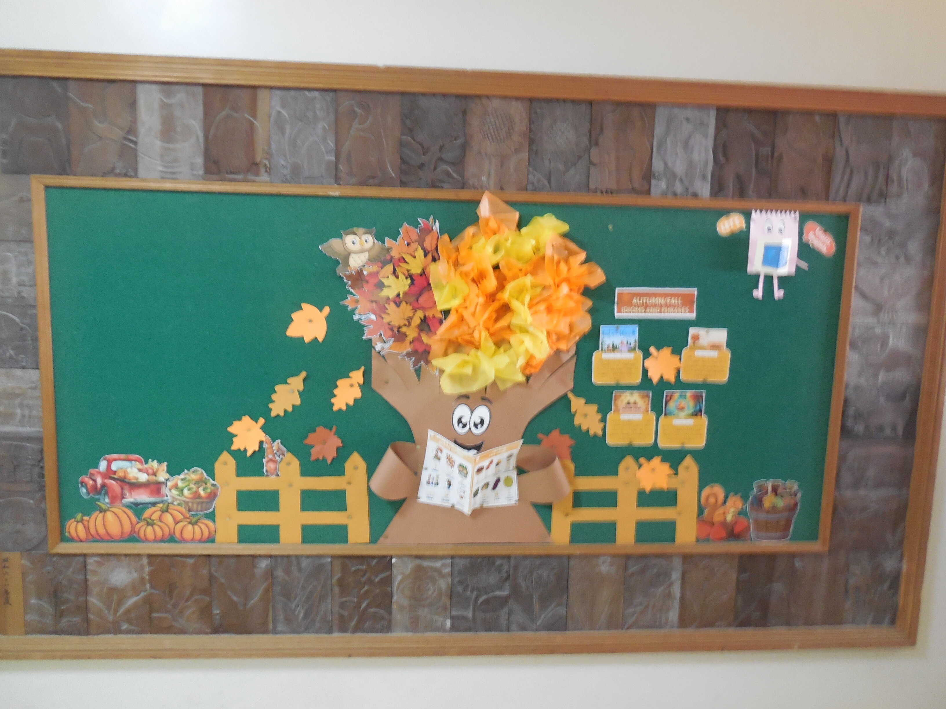 鶴巣小学校の校内も秋を感じる掲示となっています。