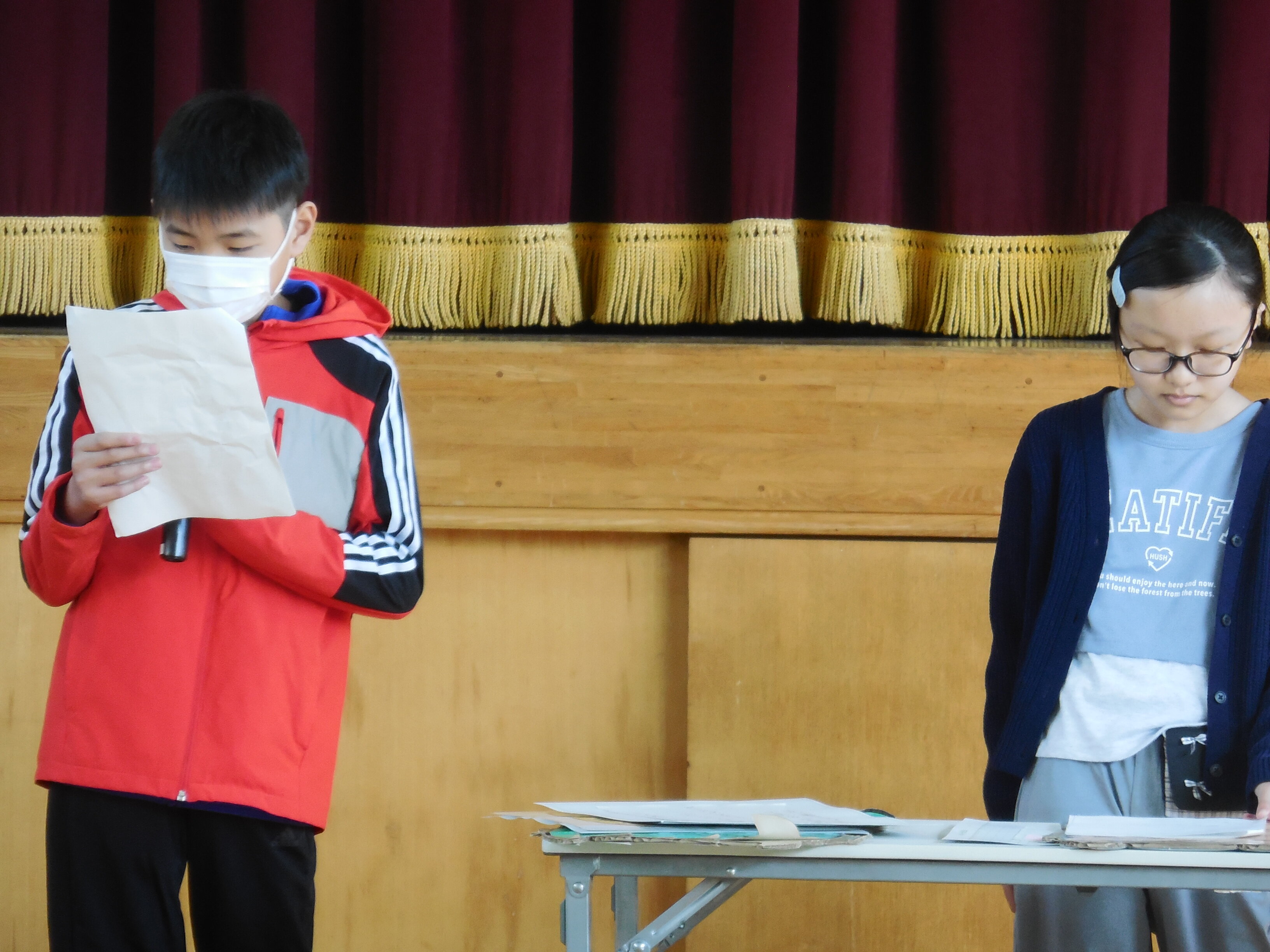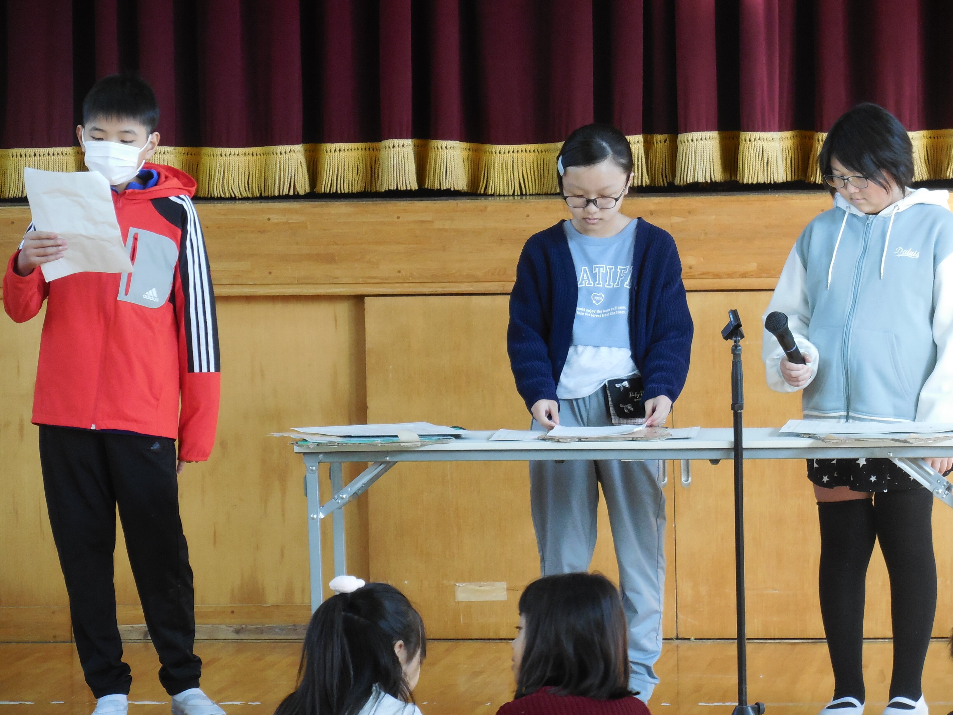 図書委員会のみなさんから図書に関するクイズや「つるすライブラリーキャッツ」という図書室のキャラクターの紹介等がありました。