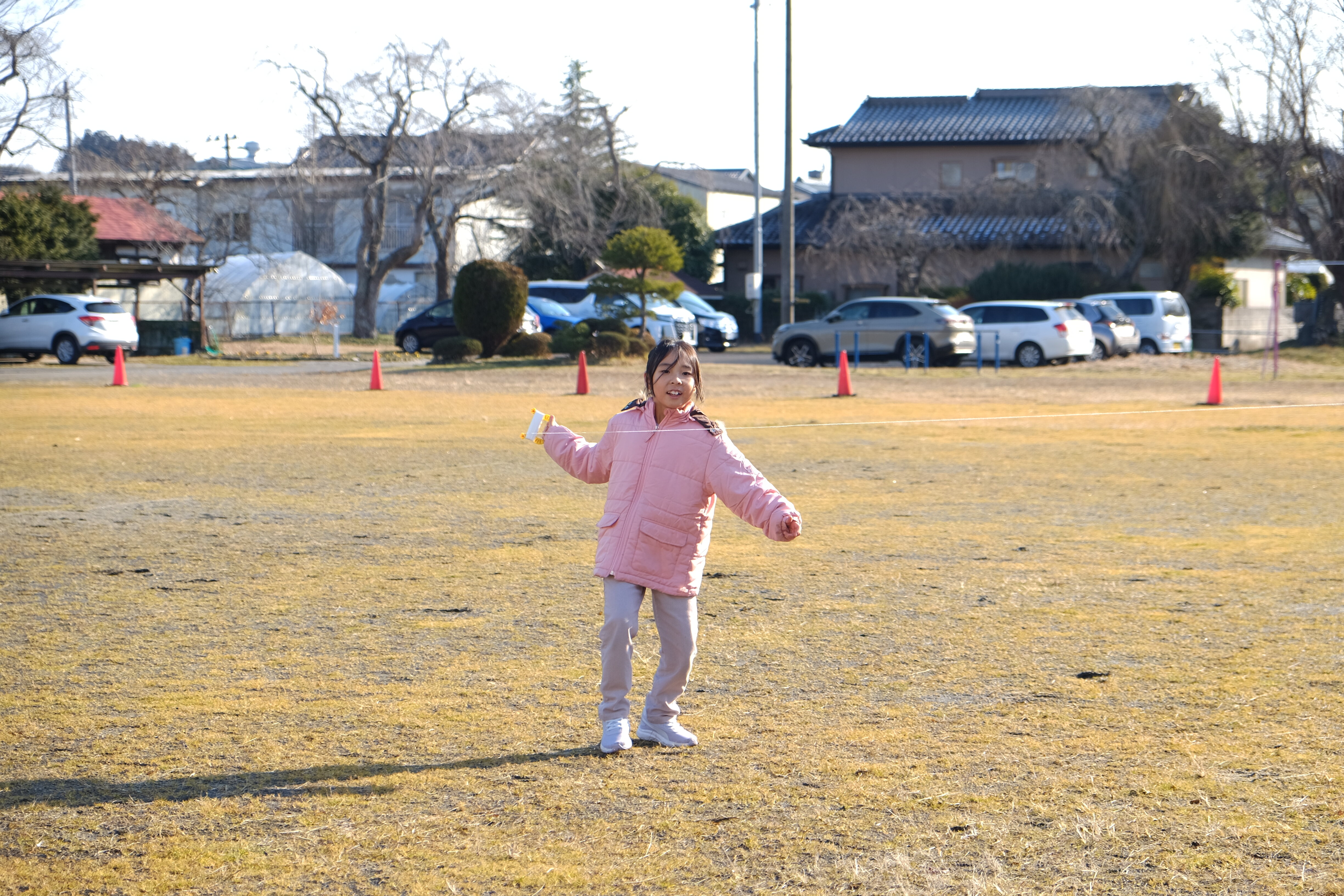 空に高く揚がるように、凧を持ってたくさん校庭を走った子供たちでした。