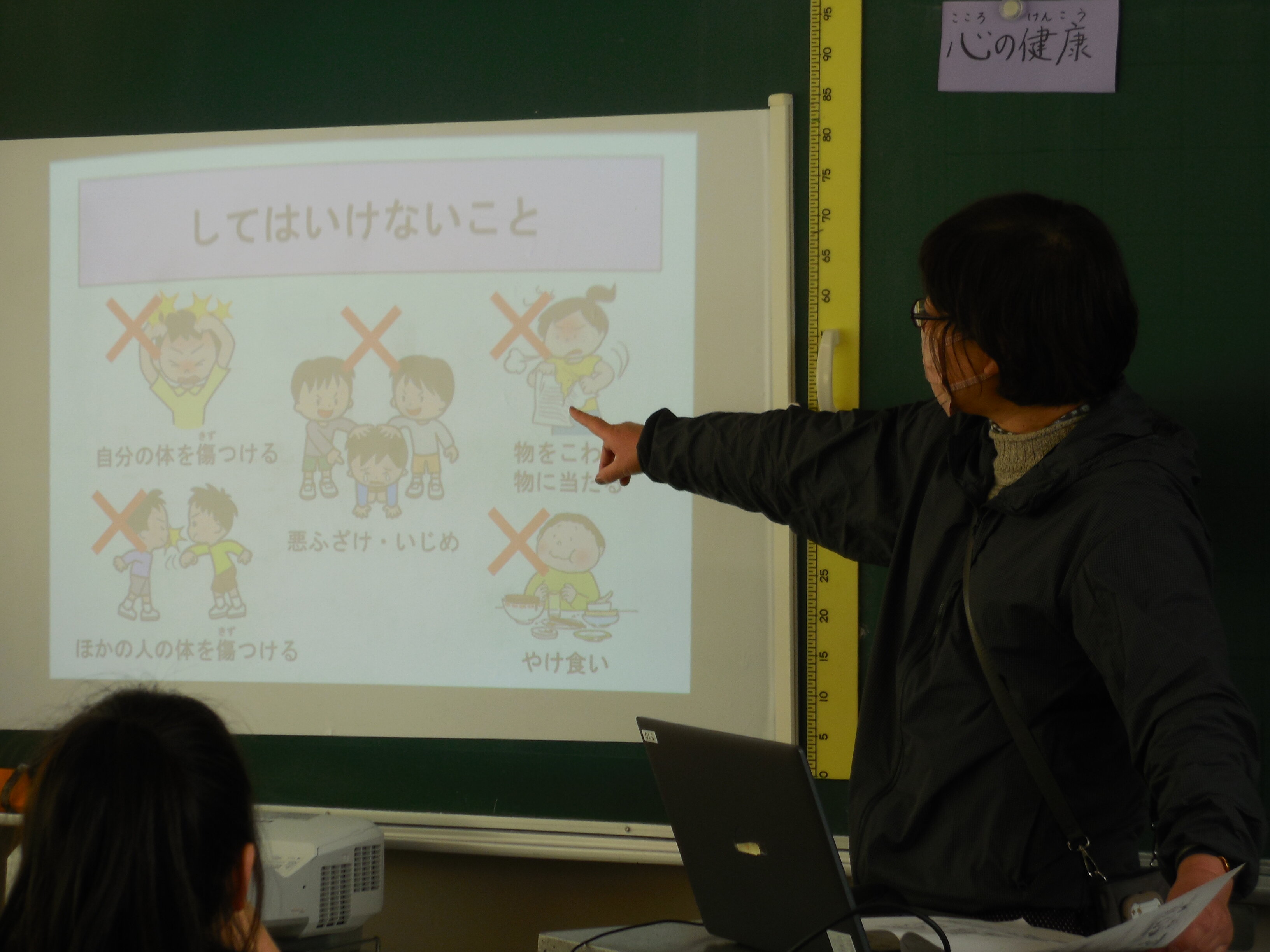 1月26日(月)にスクールカウンセラーと養護教諭が、6年生に心の健康(不安や悩みとの付き合い方とコミュニケーション)についての授業を行いました。