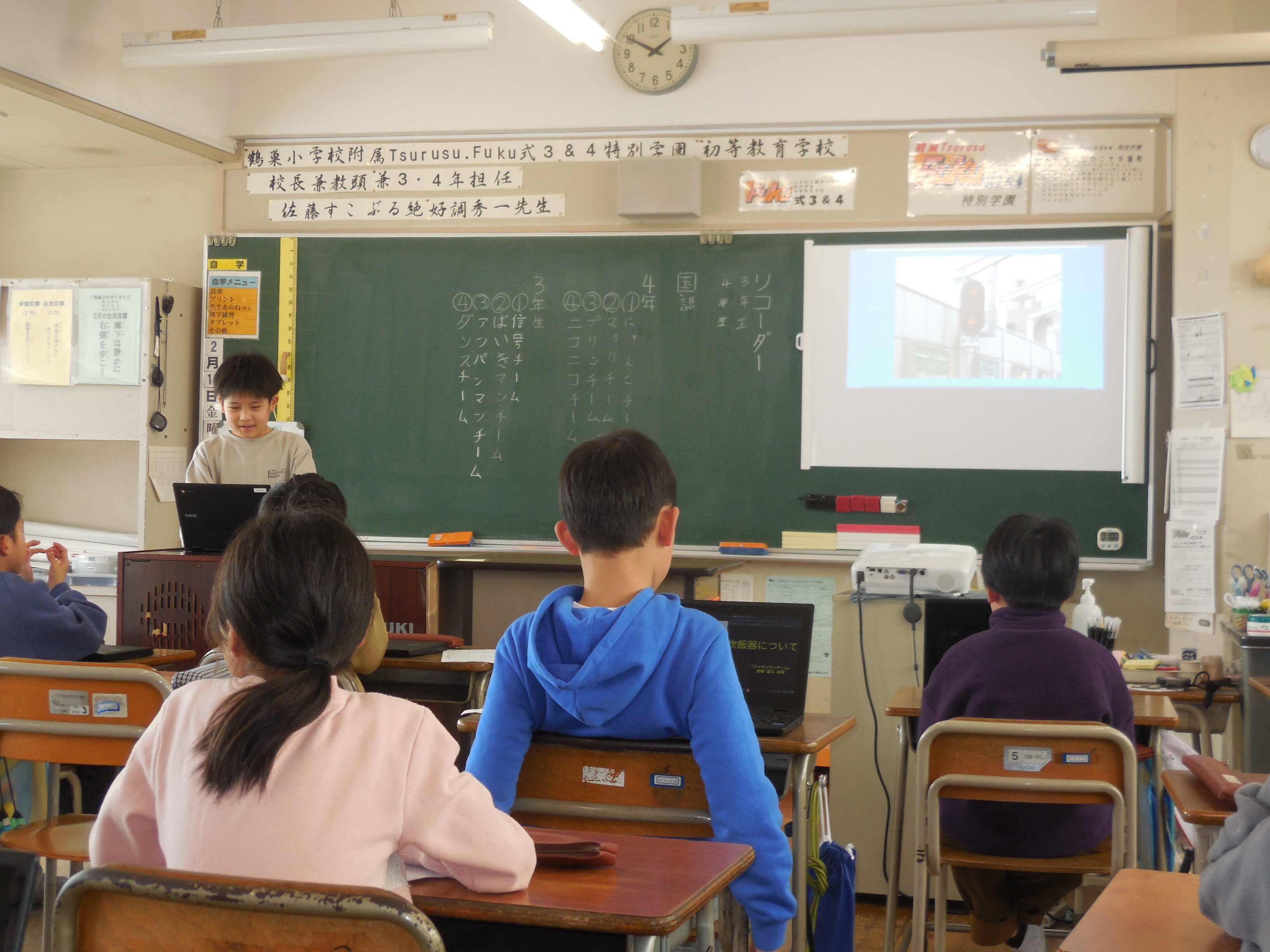 3年1・3組・4年1組は、国語の学習で自分たちが調べたことをスライドにまとめて発表しました。