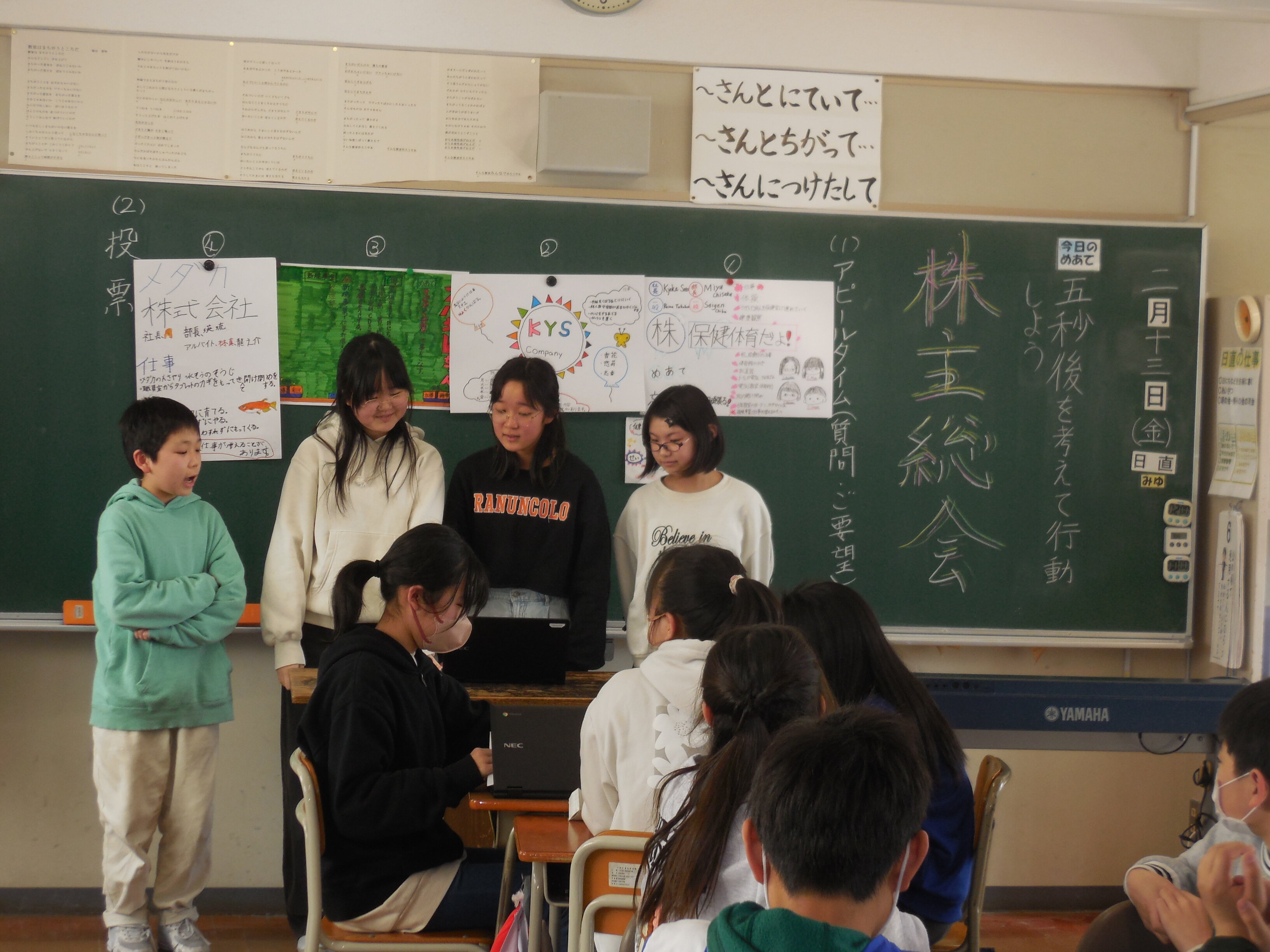 5・6年1組は、学級活動の学習で自分たちの係活動を振り返り、係ごとに発表を行いました。